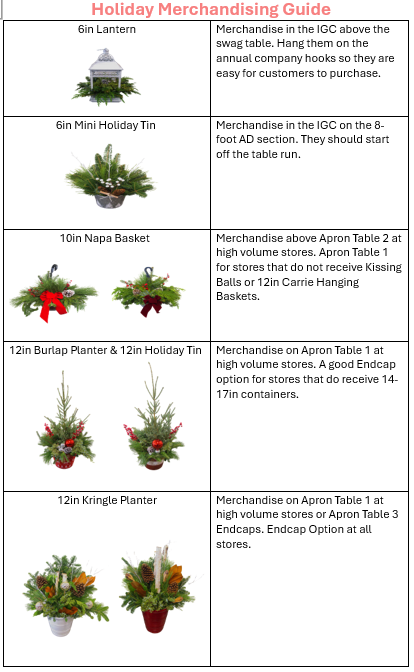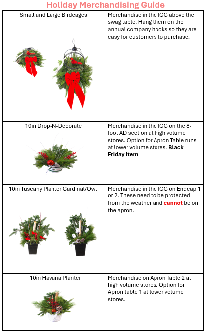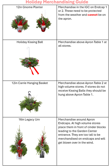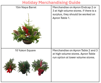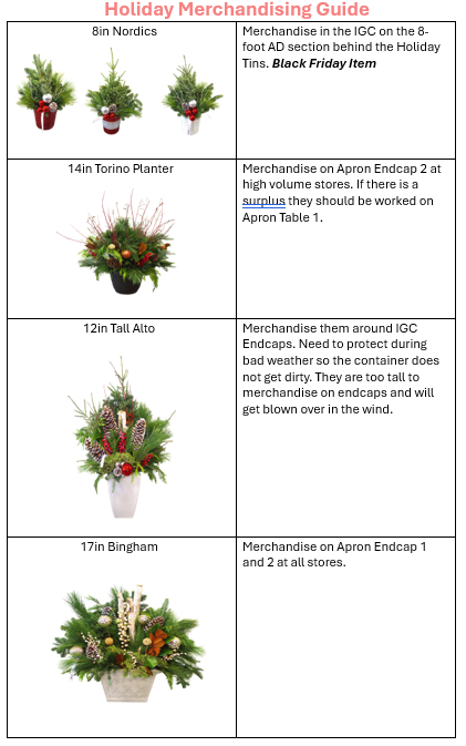 • Holiday product will be shipping, and displays should be End capped on Altman runs.