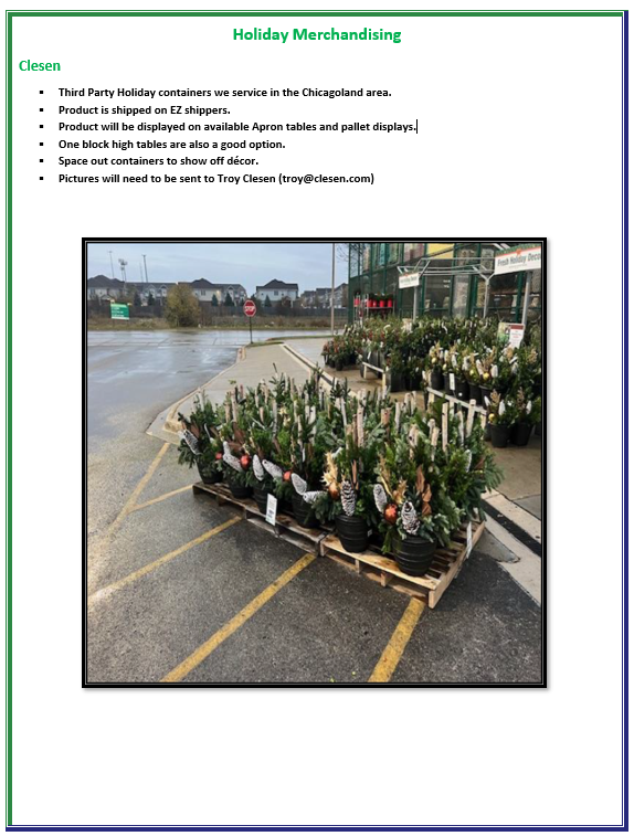 • Clesen deliveries will be shipping Tuesday/Wednesday this week. Schedule will be sent out ASAP.