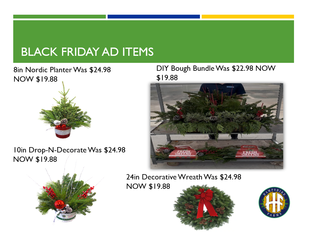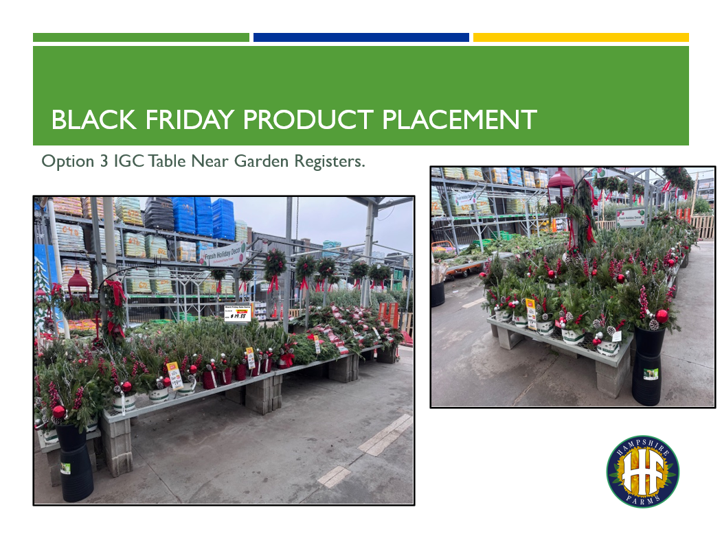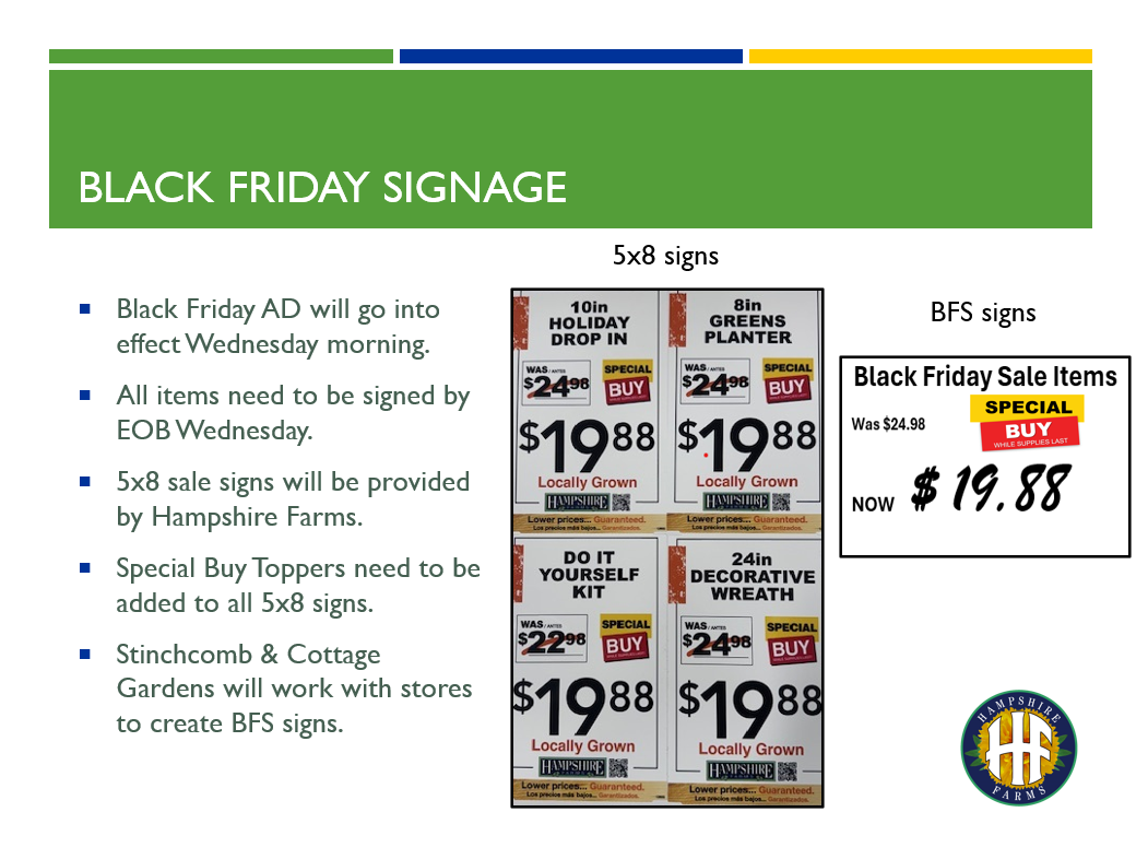 • Work with shrub partners to get all Black Friday items together and signed. All four items need to be in one location.